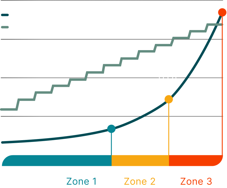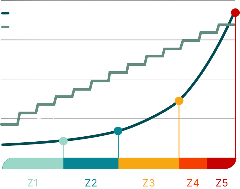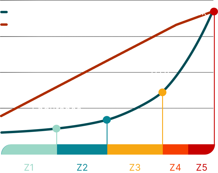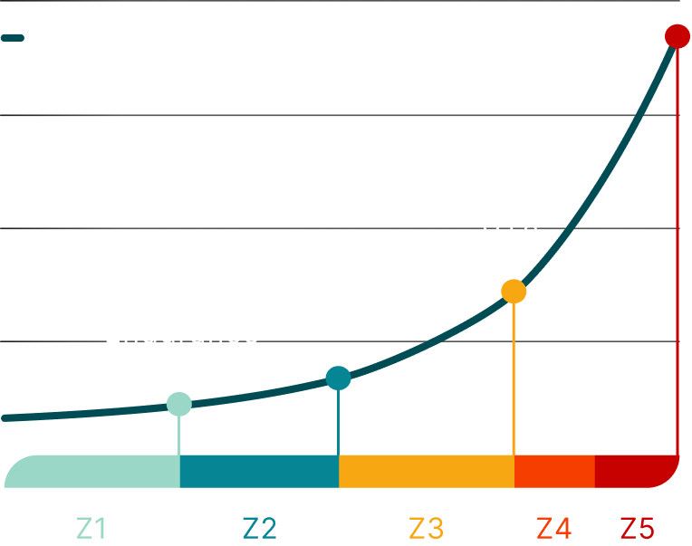 Tymewear measures your training zones. Each zone is either below, above, or in range. Your unique zone profile defines your ideal training recommendation.