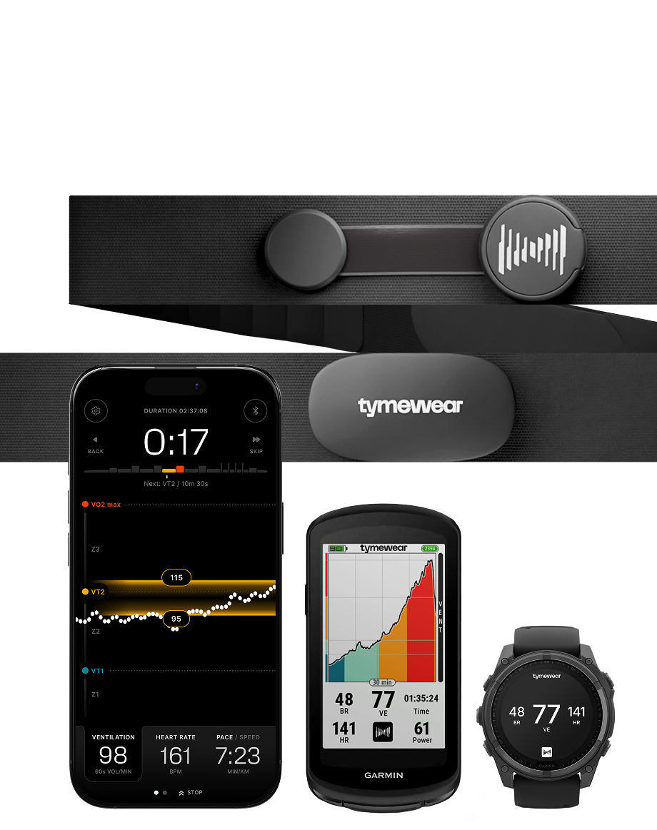 The Tymewear app translates your data to real-time intensity targets, personalized workout recommendations and insights. Sync effortlessly with Garmin, Apple, Android, and ERG mode trainers.