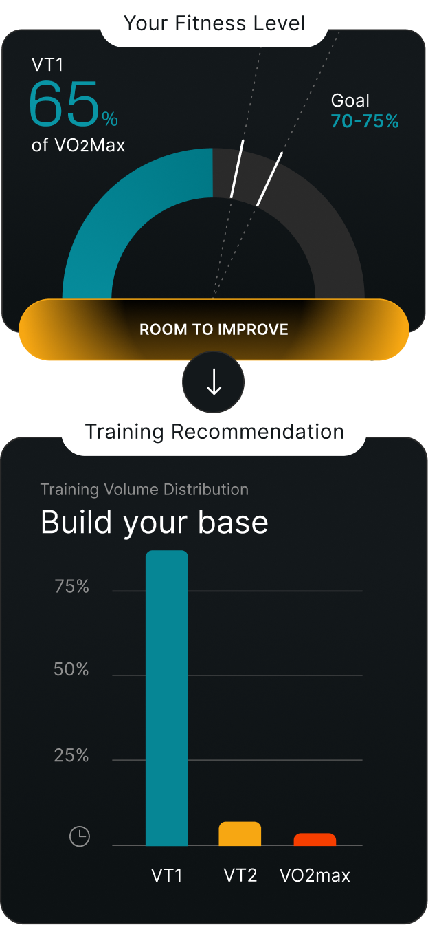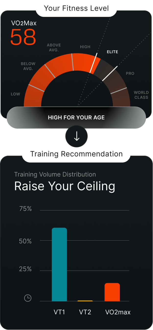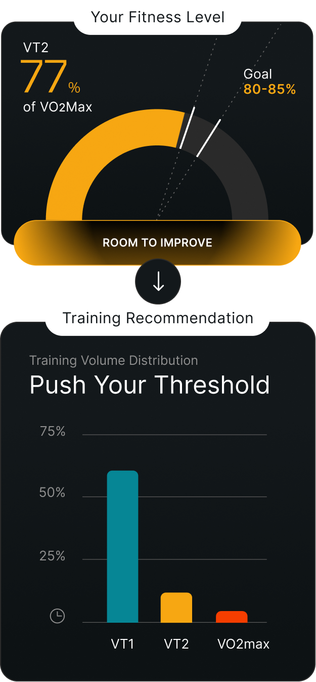 Tymewear tracks your time in zone and recommends individualized workouts to keep your training on track.