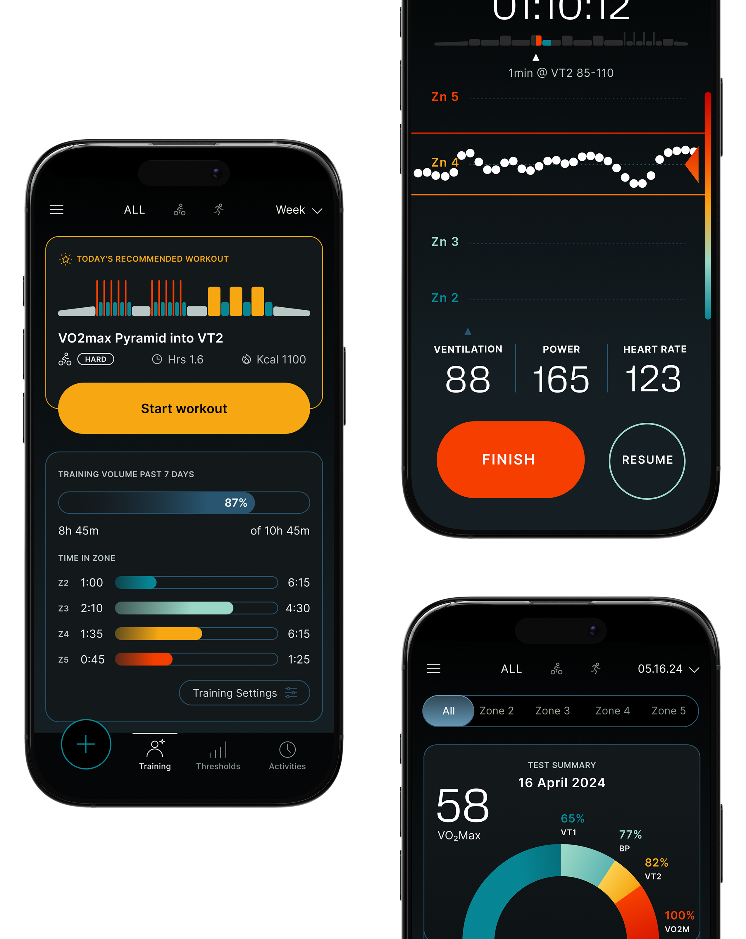 The Tymewear App measures your fitness level, personalizes your training zones, and gives you individualized workouts and recommendations to improve your fitness. Sync effortlessly with Garmin, Apple, Android, and ERG trainers.