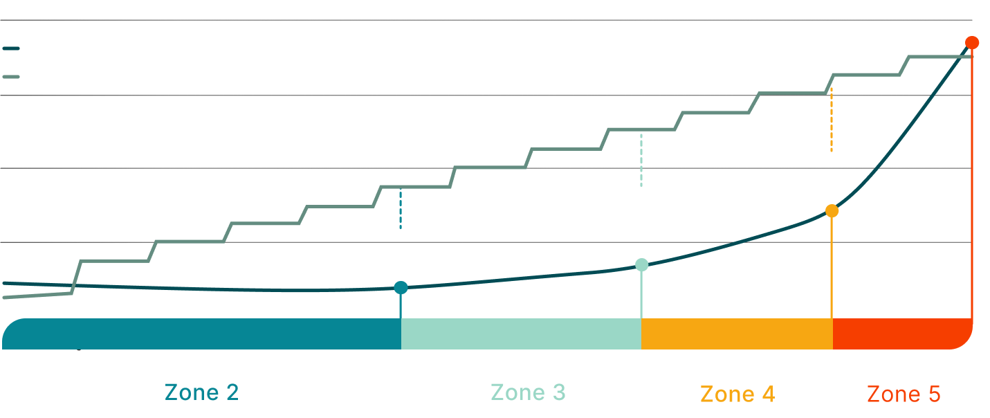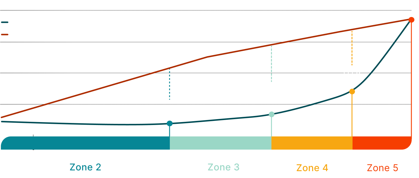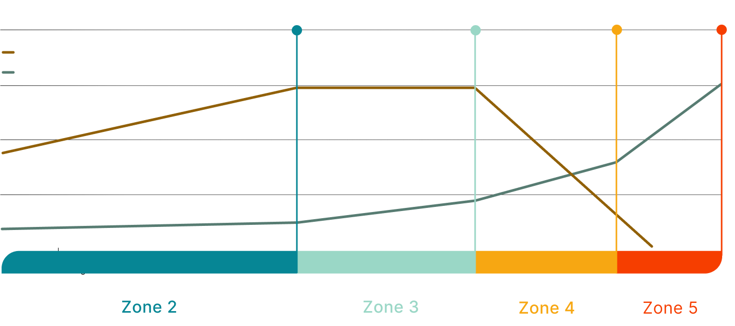 Tymewear measures your training zones. Each zone is either below, above, or in range. Your unique zone profile defines your ideal training recommendation.